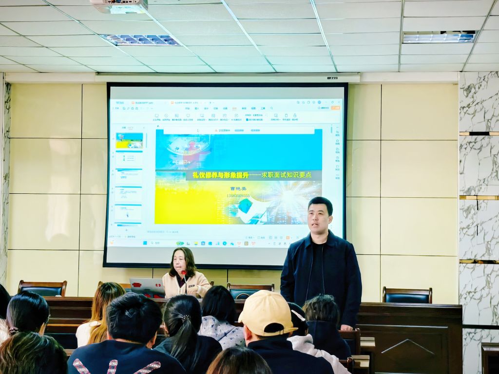 曹艳英教授还深入解析外在形象塑造与内在修养的内在关联,指导毕业生结合自身专业特点与目标岗位需求,打造干净得体、专业大气的职场形象,真正做到言行合一、礼由心生。整场讲座内容详实、干货满满,现场氛围庄重热烈,同学们全神贯注聆听、认真记录要点,积极互动自查,切实掌握了职场礼仪核心技能。