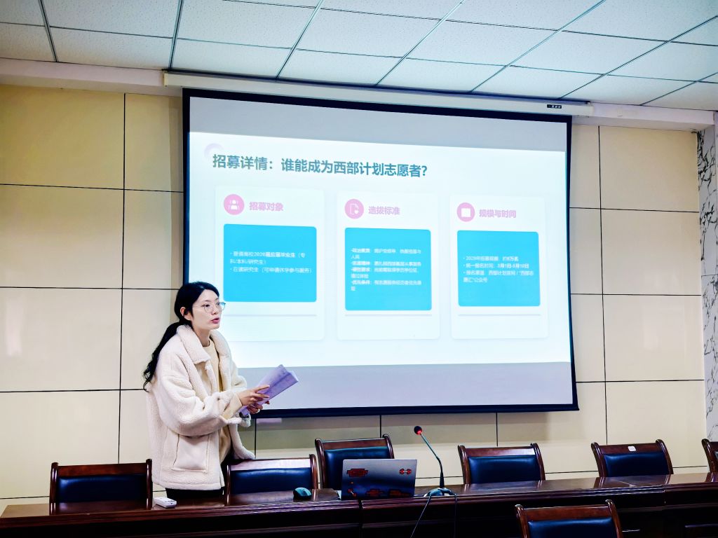 王泽慧、张爽老师分别围绕基层就业与地方扶持政策作专题讲解。系统解读大学生志愿服务西部计划、“三支一扶”、特岗教师等国家基层项目,详细介绍招募条件、服务内容、待遇保障及升学就业优待政策;同时重点宣讲烟台市毕业生留烟就业创业扶持政策,涵盖生活补贴、购房补贴、创业担保贷款等核心内容,鼓励同学们主动扎根基层、服务地方,用好政策红利,在实干中成长成才。