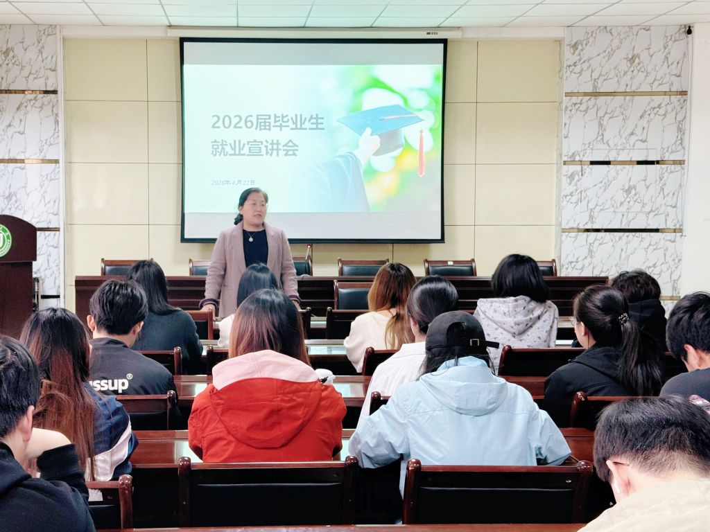 为深入贯彻落实国家稳就业、促就业工作部署,帮助 2026届毕业生精准把握就业政策、明晰就业方向、拓宽就业渠道、树立正确择业观,近日,鲁东大学生命科学学院举办2026届毕业生就业政策专题宣讲会。学院党委副书记邢希娜、宋韶彬,学院学生事务办公室主任张爽,学院团委书记王泽慧参加。