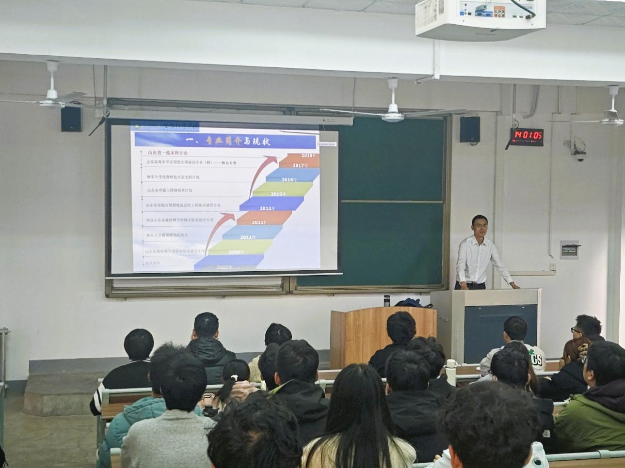 10月12日,生物工程专业开展新生入学教育,乔洪金教授担任主讲。他以深厚专业积淀与生动讲授,为新生系统梳理专业发展脉络,详细介绍了学院师资矩阵、科教融合特色、培养方案框架,解读了毕业要求与就业方向——从实验室科研到生物工程企业实践,发展路径清晰可触。这场“专业第一课”既揭开了产业发展的面纱,更有助于新生锚定学业目标、明确成长方向,为大学阶段的学习生活注入了信心与动力。