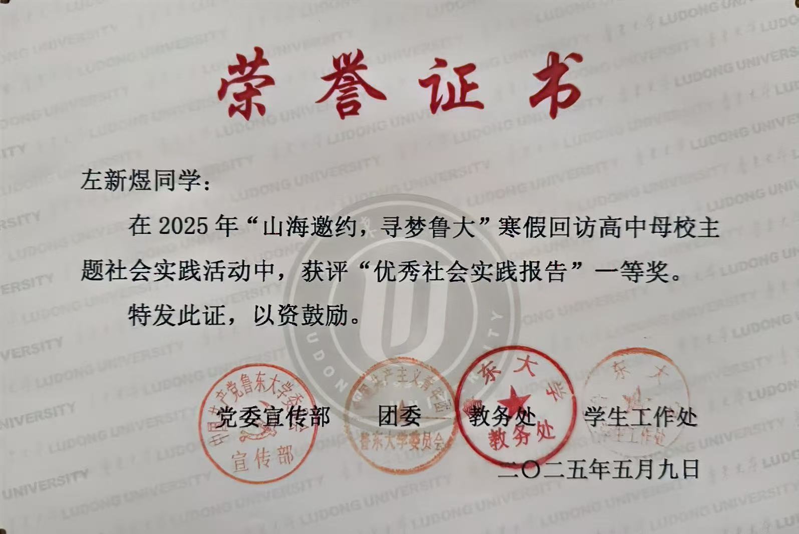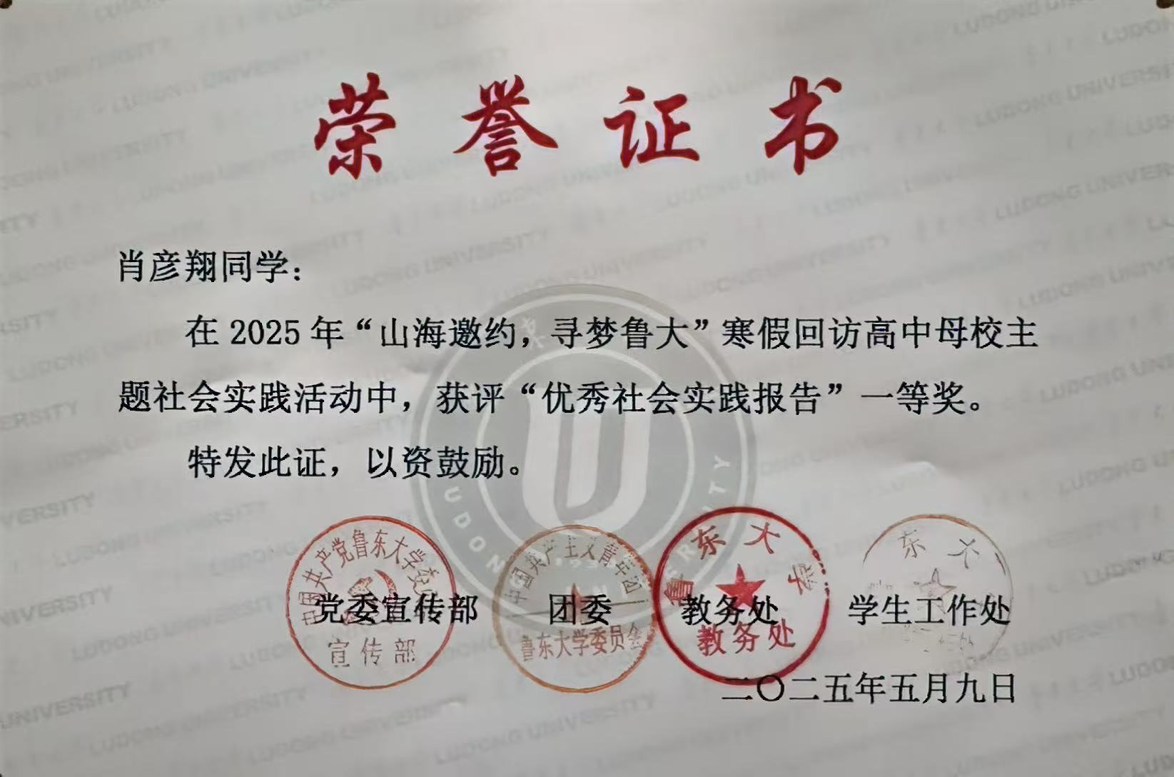 我校2025年“山海邀约,寻梦鲁大”寒假回访高中母校社会实践活动评选结果揭晓。在此次活动中,13位生科学子凭借其精心准备、内容详实且极具说服力的社会实践报告,荣获“优秀社会实践报告”称号,成为全校实践育人的优秀典范。
