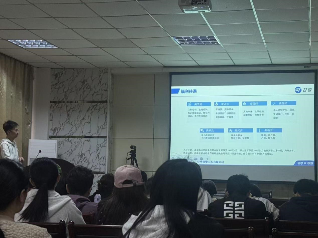 鲁东大学生命科学学院相关负责人表示,学院始终坚持“产教融合、校企协同”的育人理念,深耕生命健康领域人才培养,打造了“三实·三进·三阶”的产教融合实践教学体系,此次与甘李药业的专场宣讲会,是学院推进校企合作、拓宽毕业生就业渠道的重要举措。