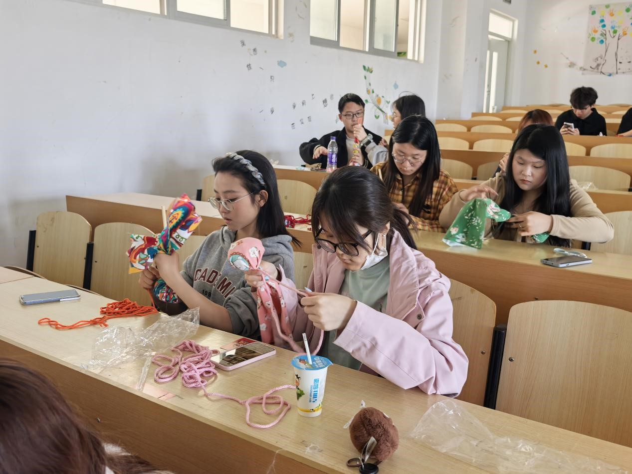 活动现场氛围热烈,暖意融融。艾草锤制作环节中,同学们认真学习技巧,有条不紊地完成整理艾草、裁剪布料、缠绕固定等步骤,将春日巧思与民俗情怀融入指尖作品,在动手实践中深入了解传统民俗知识。随后,学子们结伴前往牡丹苑,漫步花丛间欣赏牡丹绰约风姿,交流春日见闻,在欢声笑语中亲近自然、放松身心,定格下春日里的美好瞬间。
