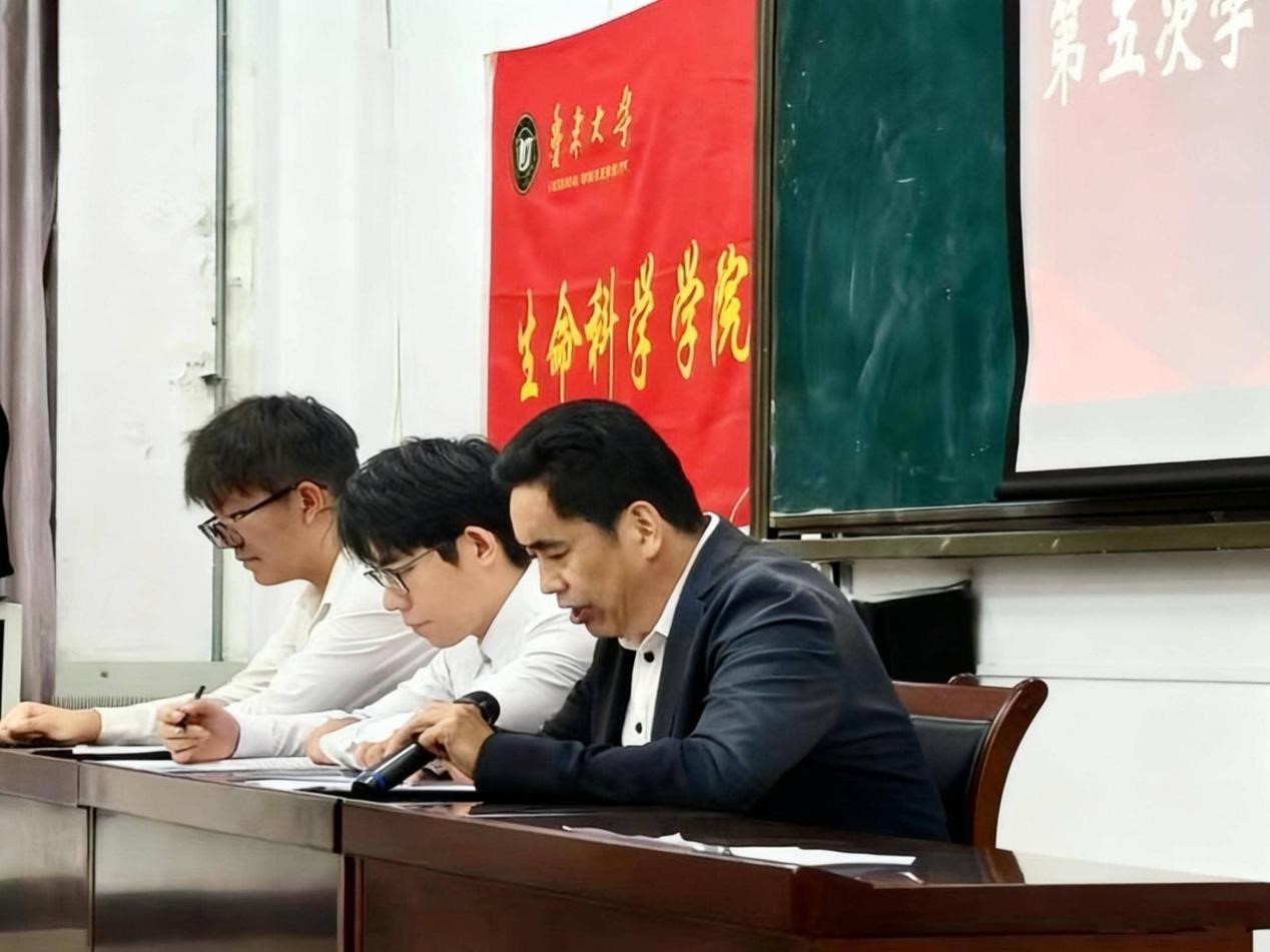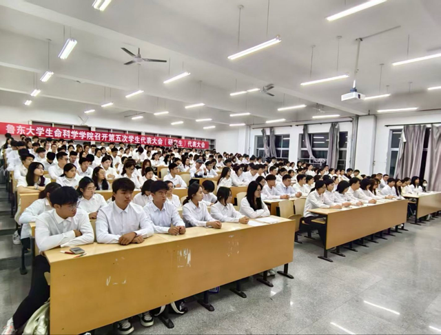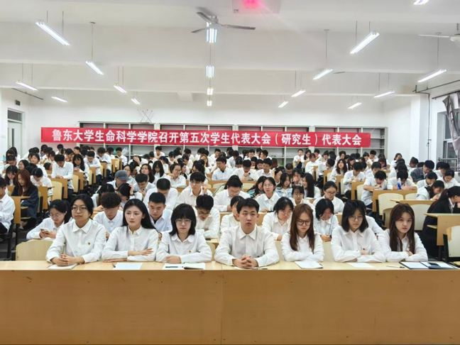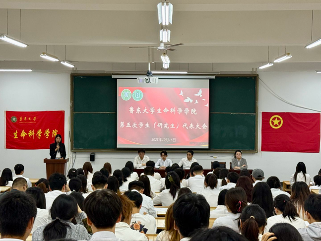 2025年10月19日晚,鲁东大学生命科学学院第五次学生(研究生)代表大会在生化大楼A506隆重举行。大会由学院团委书记王泽慧主持,学院党委副书记李传明、辅导员任梦怡、兄弟学院学生会主席以及213名学生代表参加大会。
