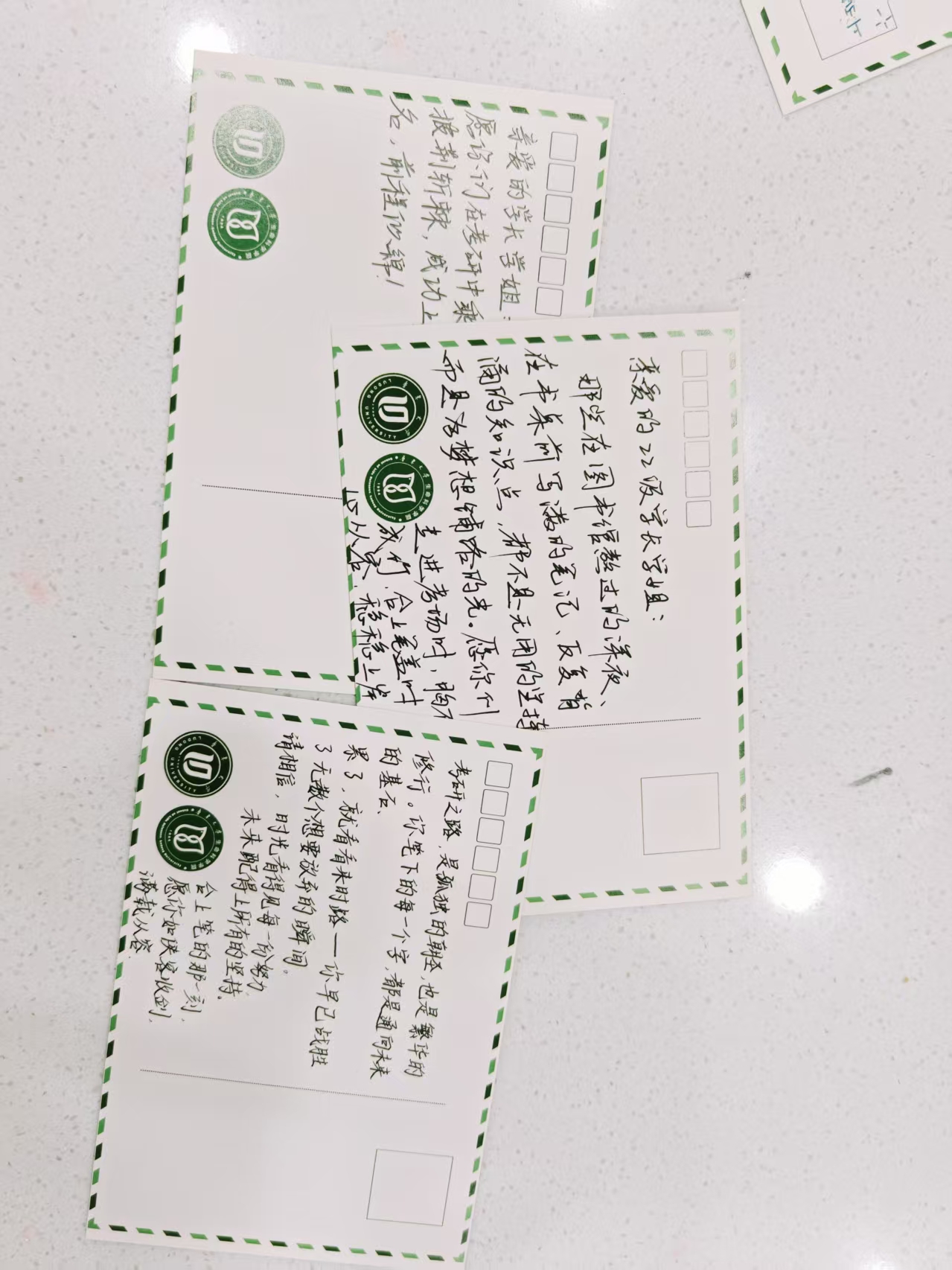 从三月的春光明媚到十二月的寒风凛冽,学院的考研氛围始终炽热浓烈。为给学长学姐注入冲刺动力,学弟学妹们化身“研途暖心护航官”,精心绘制缀有卡通纹样、写满励志话语的明信片,将“春风得意马蹄疾,一日看尽长安花”“试纸凝墨香,提笔赴征程”的真挚期许与美好祝愿,悉数送达考研学子手中,学院教师亦秉持育人初心送上殷殷寄语:“考研的意义不在于结果,而在于你咬牙坚持的每一刻,终将成就更好的自己。”