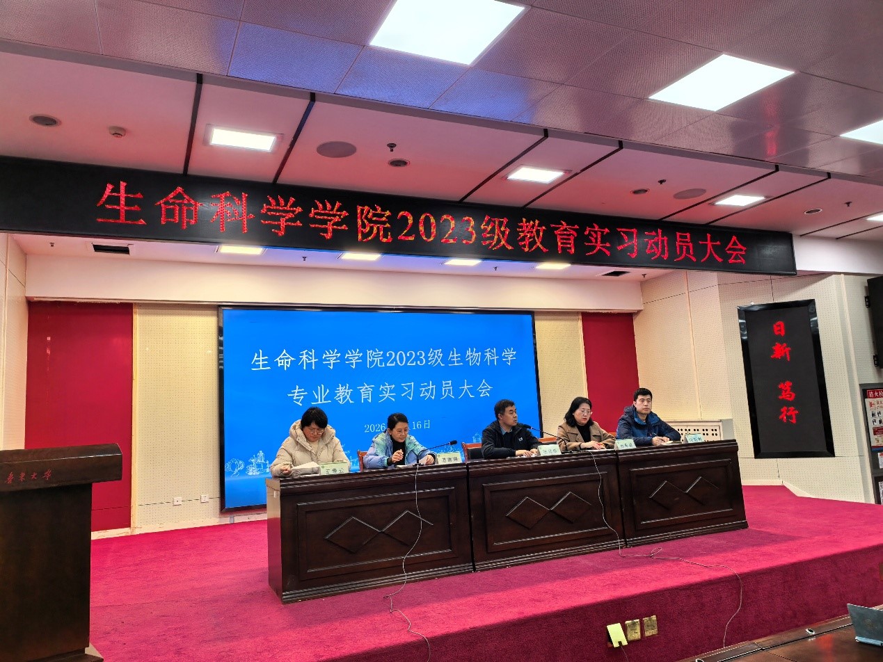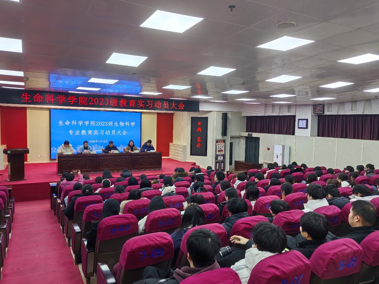 2026年1月16日下午,生命科学学院在校图书馆一楼报告厅召开2023级生物科学专业教育实习动员大会,全面部署并动员本年度教育实习工作。院长张兴晓,党委副书记邢希娜、宋韶彬,教学副院长姜琳琳,全体指导教师及2023级生物科学专业学生参会。会议由姜琳琳副院长主持。